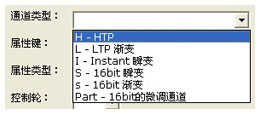 用户可以先选择通道的"属性类型"。某些"属性类型"被选中后,软件会自动填写"通道类型"、"属性键"和"控制轮"三项。若用户检查后,认为"通道类型"合适,"属性键"和"控制轮"也没有与已经设置好的通道重复,就可以直接点击"确认"按键完成通道设置。