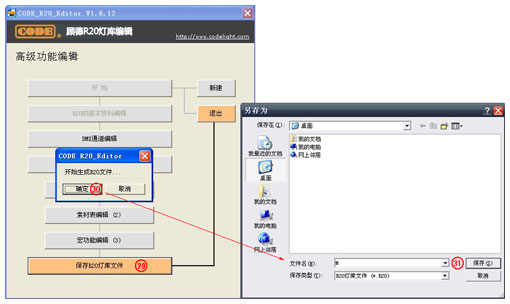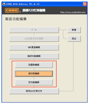 用户如果需要在灯库里面增加"范围表"、"素材表"和"宏功能"的部分,那么可以在保存为R20文件之前进行相应的"高级功能编辑"。
