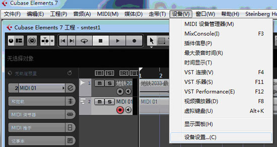 2、运行Cubase,注意:MIDI线必须设置好。