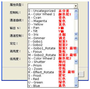 用户可以先选择通道的"属性类型"。某些"属性类型"被选中后,软件会自动填写"通道类型"、"属性键"和"控制轮"三项。若用户检查后,认为"通道类型"合适,"属性键"和"控制轮"也没有与已经设置好的通道重复,就可以直接点击"确认"按键完成通道设置。