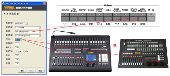 通过上面的设置,"棱镜选择"通道将和第九(Effect/Yellow)属性键关联,并通过右面的控制轮设置通道数值。